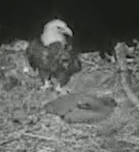 I should stick to only watching west coast cams so I can see a nest in the daylight. Sometimes, like tonight, it's late before I get a chance to make the rounds. I think this is Mom sitting on the White Rock nest. You can see the difference in the light as I wait for her to move so I can see the babies.