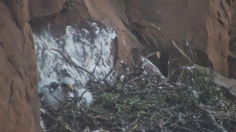 I got a pretty good look at the Africam Black Eagle chick yesterday, but not until the adult showed up.